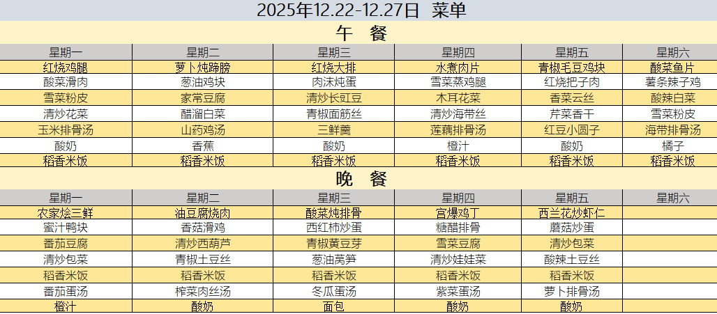 2025年12.22-12.27日 菜单