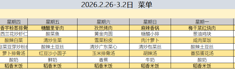 2026年2月26日-3月2日 菜单