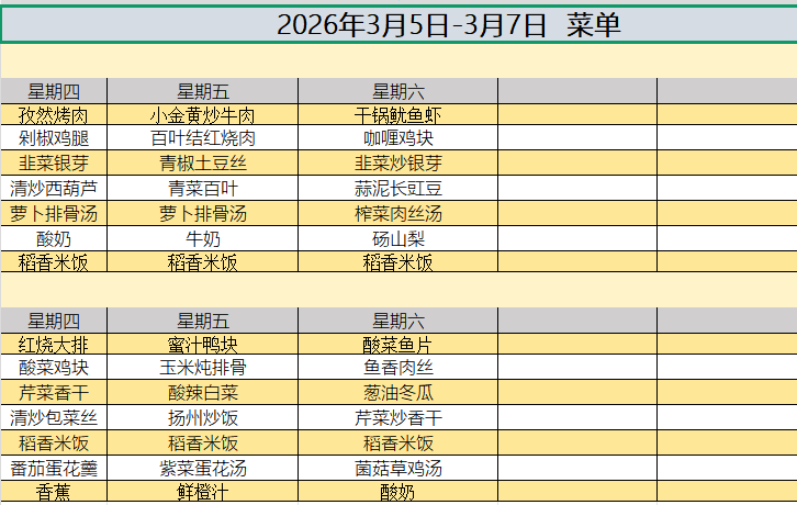 2026年3月5日-3月7日 菜单