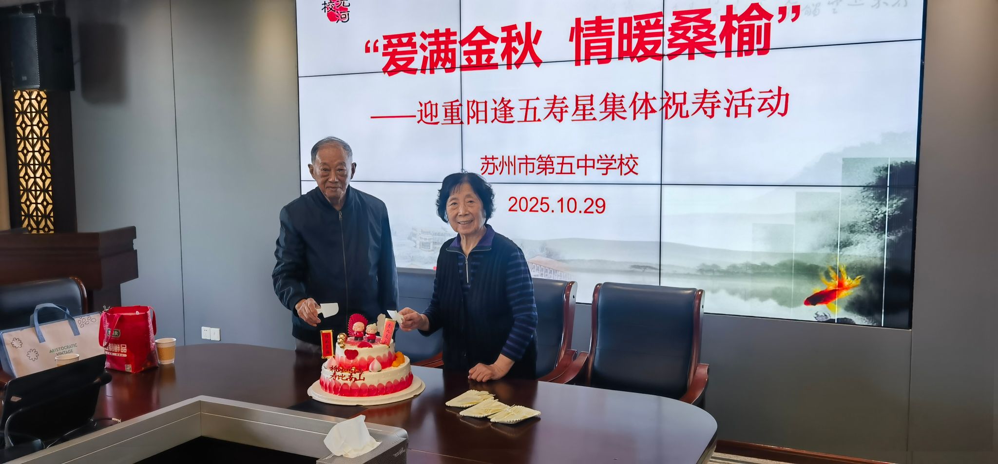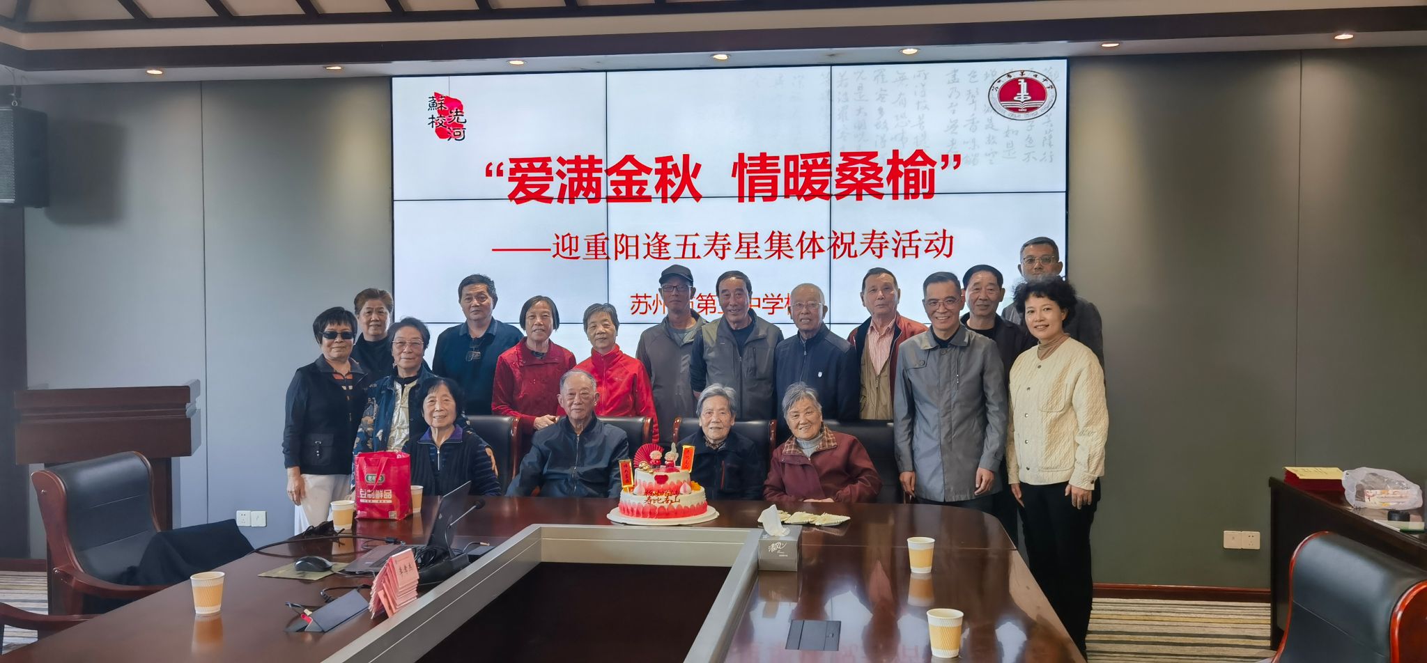 岁岁重阳,今又重阳。在中华民族传统敬老节日——重阳节来临之际,为弘扬尊老、敬老、爱老、助老的优良传统,表达对为学校发展奉献毕生心血的老教师们的崇高敬意与深切关怀,我校于10月29日隆重举行了“爱满金秋、情暖桑榆”重阳节慰问活动。为年满65岁、75岁、85岁和95岁的“逢五”离退休老同志祝寿。老寿星们欢聚一堂,共度重阳佳节。学校领导陈燕青副书记、朱军副校长,学校党、政办公室以及校退教领导参加了本次祝寿活动。会议室内欢声笑语,暖意融融,学校领导与老同志们欢聚一堂,共叙情谊、共话发展。