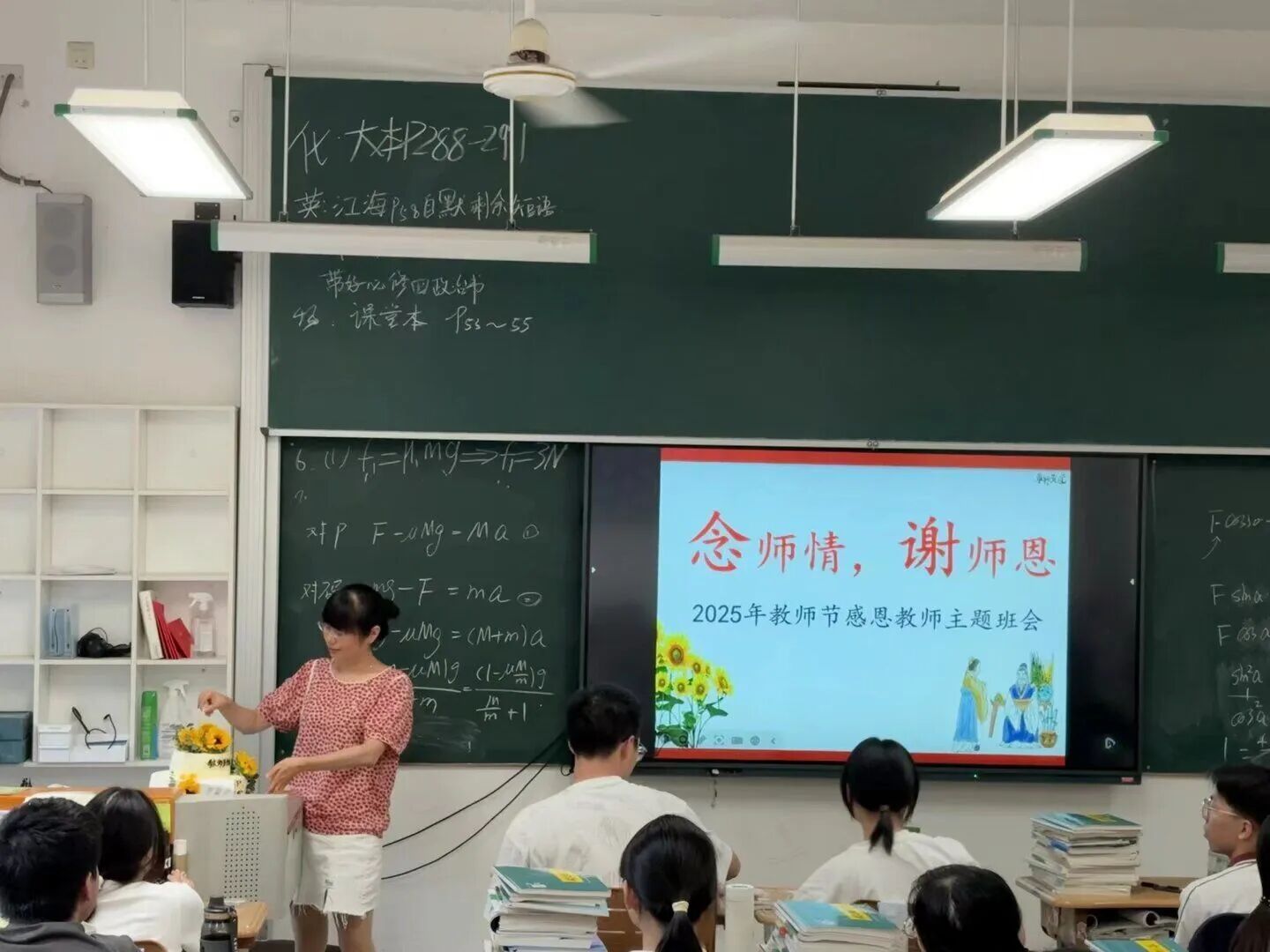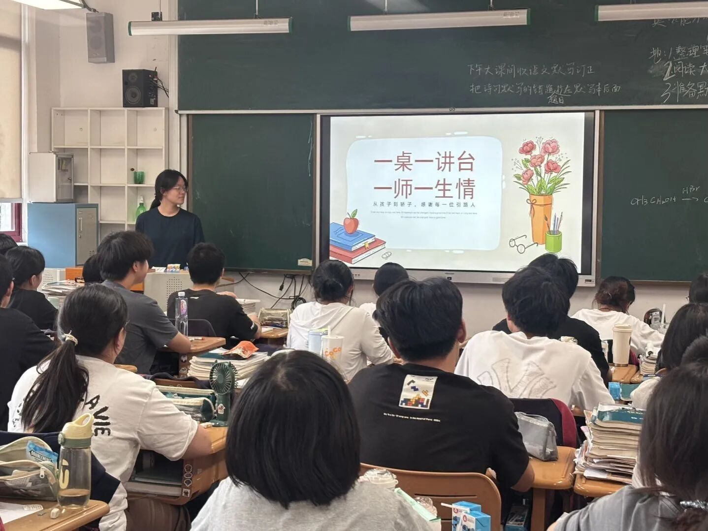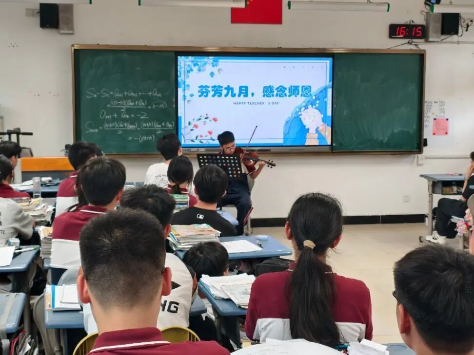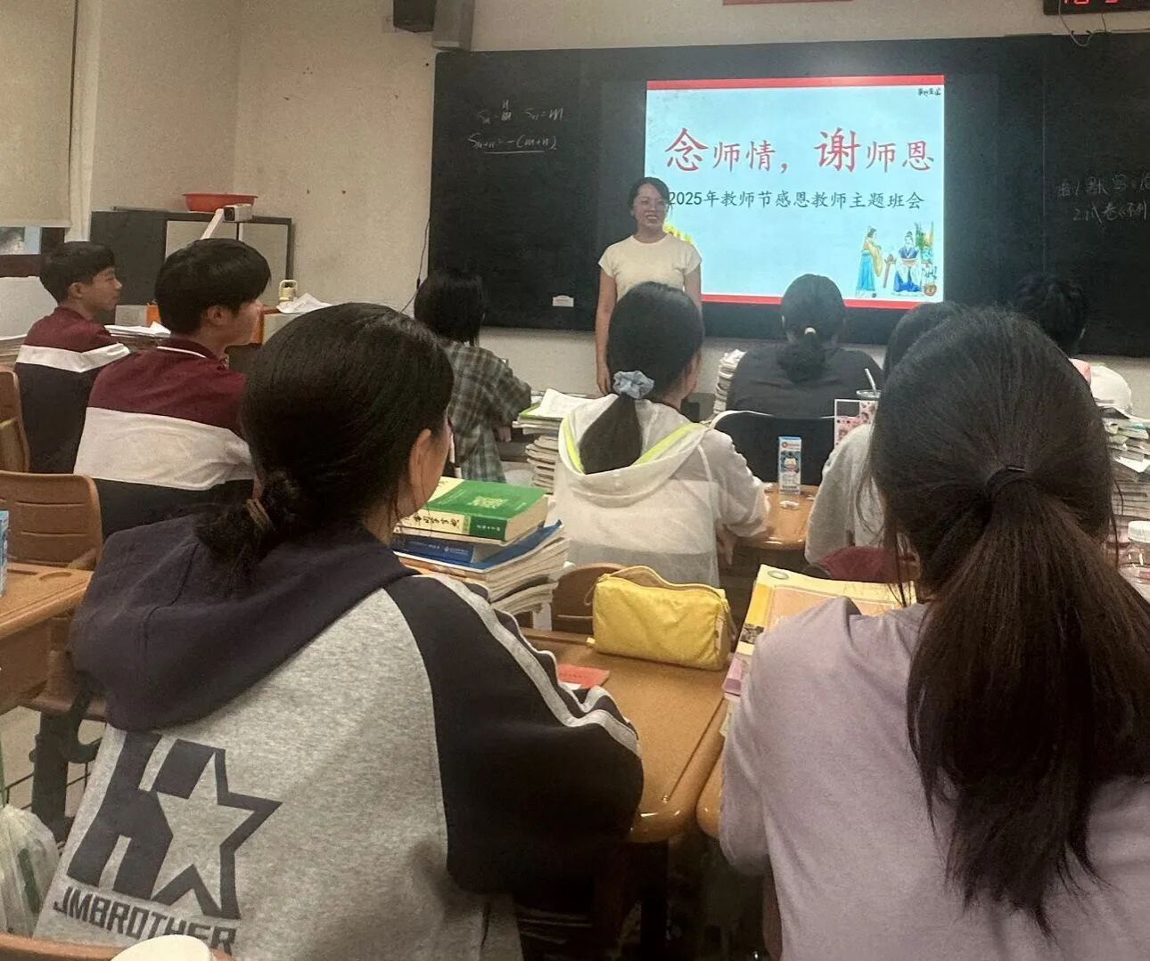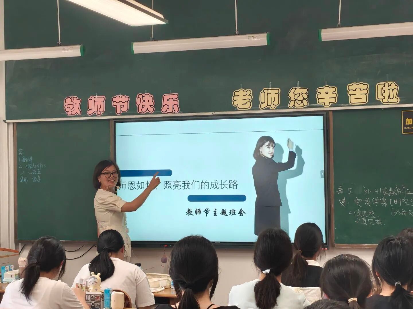 各班教室化作温馨的感恩港湾,开展“芬芳九月,感念师恩”主题班会。精心制作的PPT,真情喊出的“老师,您辛苦了”,表达敬意的诗朗诵……不仅让尊师重教的种子扎根心底,更让师生情谊愈发绵长。