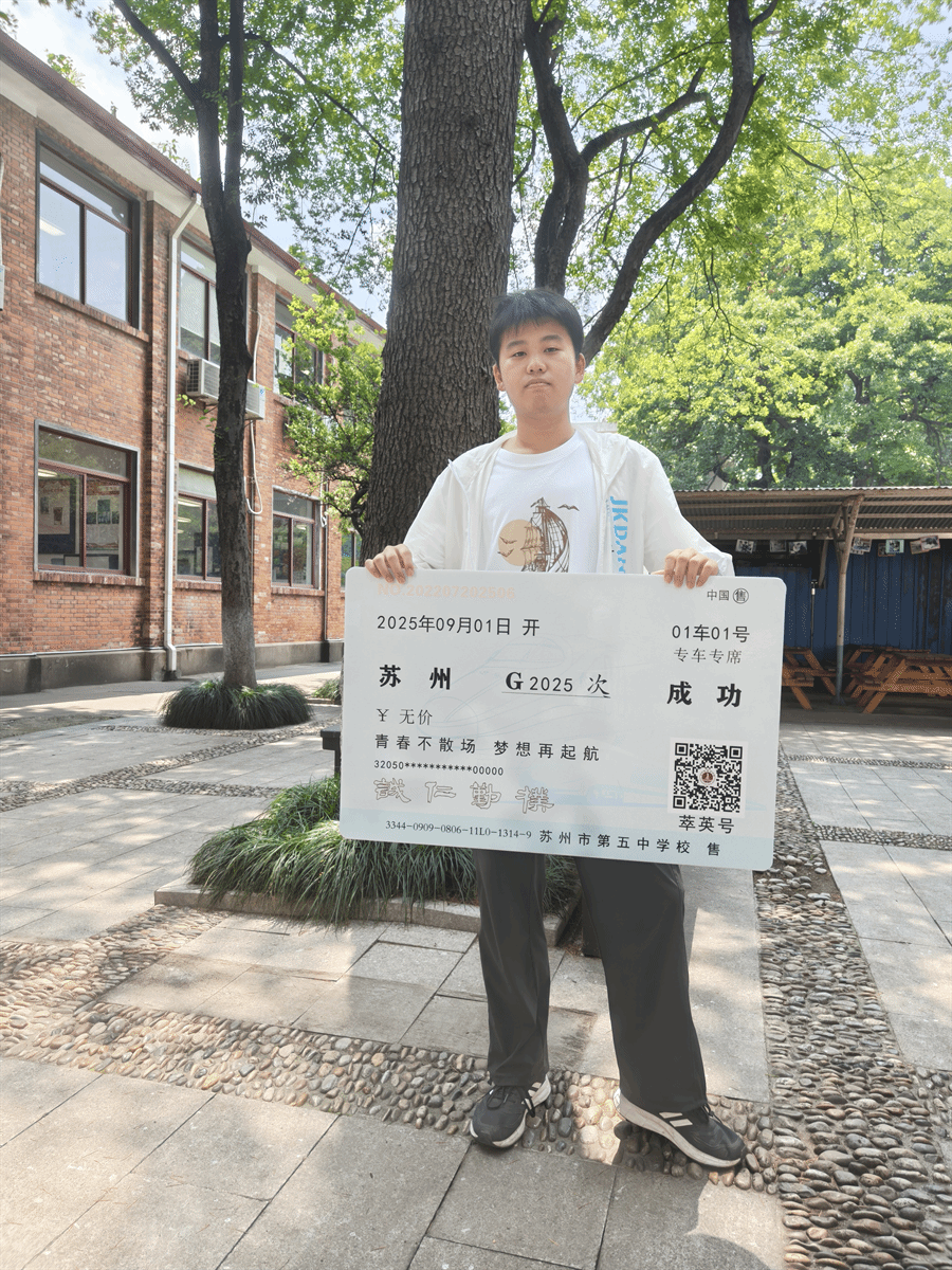 感恩五中三年的培育,让我在挑战中成长,在磨砺中坚定。母校给予我的不仅是知识,更是追逐梦想的勇气。愿学弟学妹们珍惜时光,脚踏实地,敢想敢为——每一次努力都在为未来铺路,每一份坚持终将照亮前行的方向。愿我们都能乘风破浪,奔赴山海,书写属于自己的精彩!