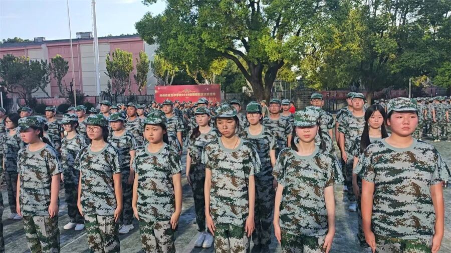 夏日尚未褪去暑气,绿茵已被迷彩点燃。8月24日,我校2025级高一新生身着戎装,精神抖擞地齐聚校园,以昂扬挺拔的姿态迎接高中生涯第一课——军训开营仪式。我校柯勤校长、金阊街道人民武装部杨奕部长,朱军副校长、陈燕青副校长、朱翔副校长及全体高一班主任老师共同出席,开启为期一周的军训之旅。
