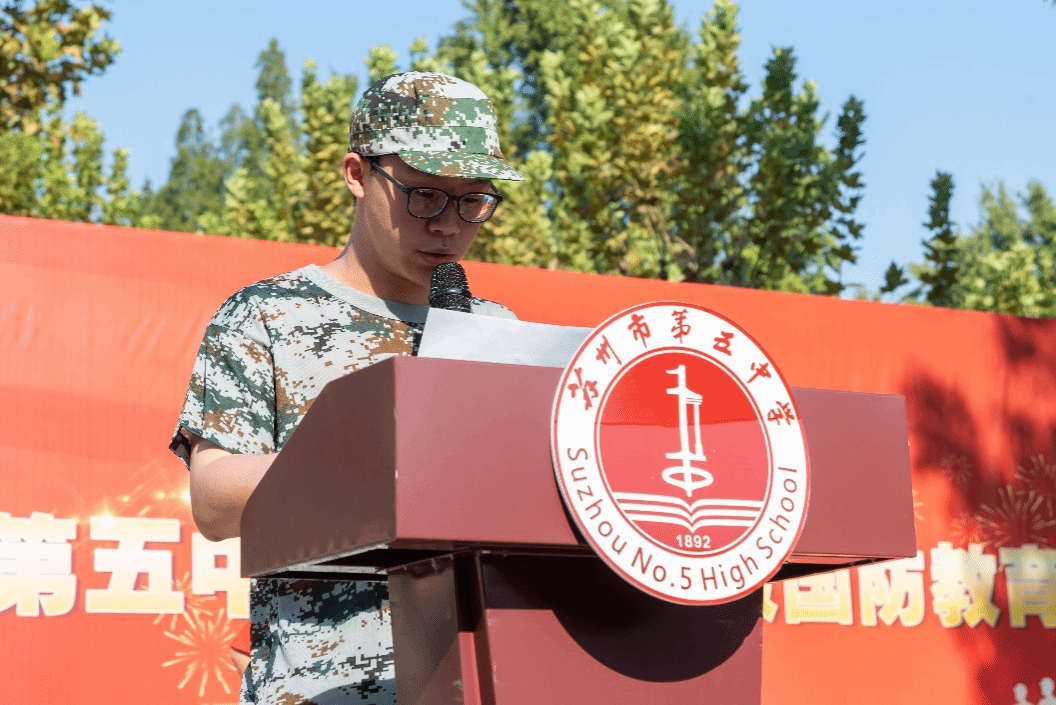 “请教官放心!请老师放心!请学校放心!我们定以最饱满的热情、最昂扬的斗志、最扎实的行动,圆满完成军训任务,展现高一新生的青春风采,为高中生涯书写精彩开篇!”学生代表张熙皓同学带领全体新生庄严宣誓,铮铮誓言响彻云霄,展现了五中学子的昂扬斗志与青春风采。