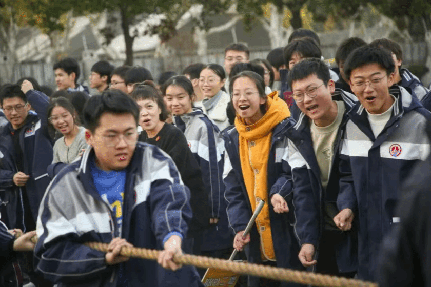 这根拔河绳,拉起的是团结的力量,是不服输的韧劲,是青春独有的热血与激情。输赢早已不重要,重要的是在齐心协力的拉扯中,同学们体会到 “人心齐,泰山移” 的真谛,感受到集体的温暖与力量。这是成长的必修课:学会合作,懂得坚持,敢于拼搏。