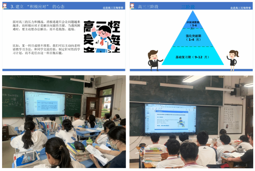 李孟瑶老师针对高三学生的近期困惑,开设了一场题为《走进高三 无悔青春》的讲座,理论结合实践,告知了高三不同阶段可能出现的情况,教给了同学们调节情绪、稳定自我的实用技巧,为高三逐梦注入了温暖动能。