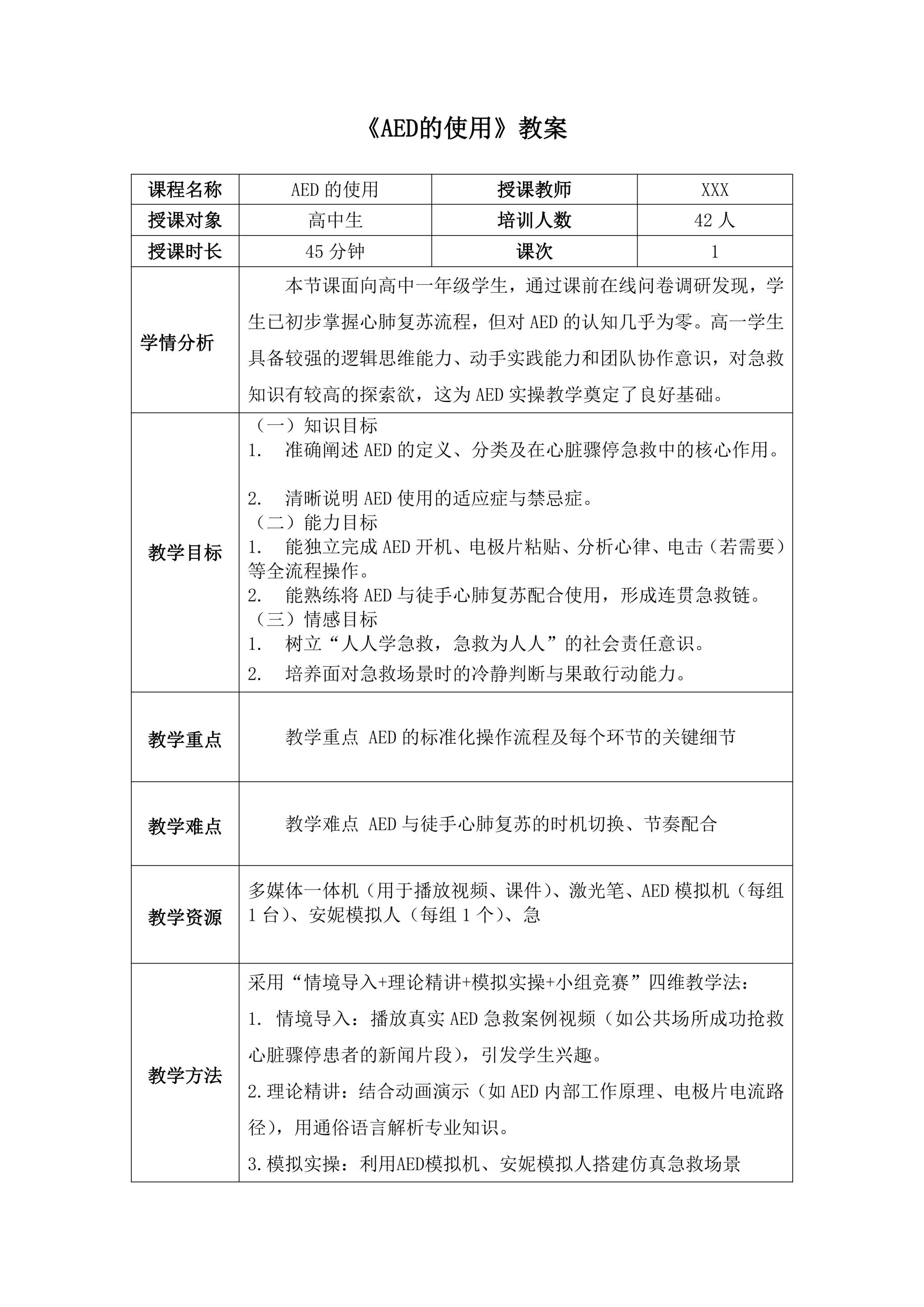 争分夺“秒”,“救”是关键 —--2025年江苏省第二届中小学急救教育展示活动参展作品集 四、AED的使用(王燕娟)