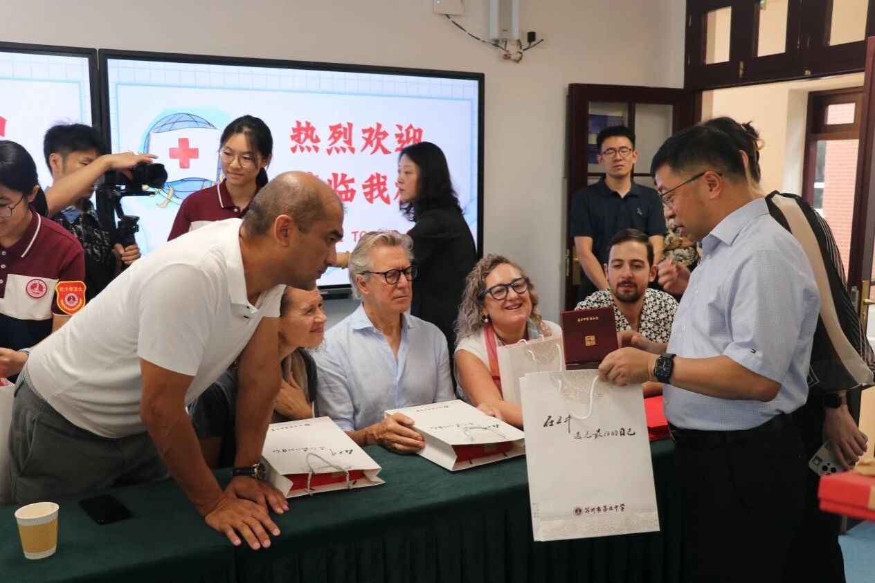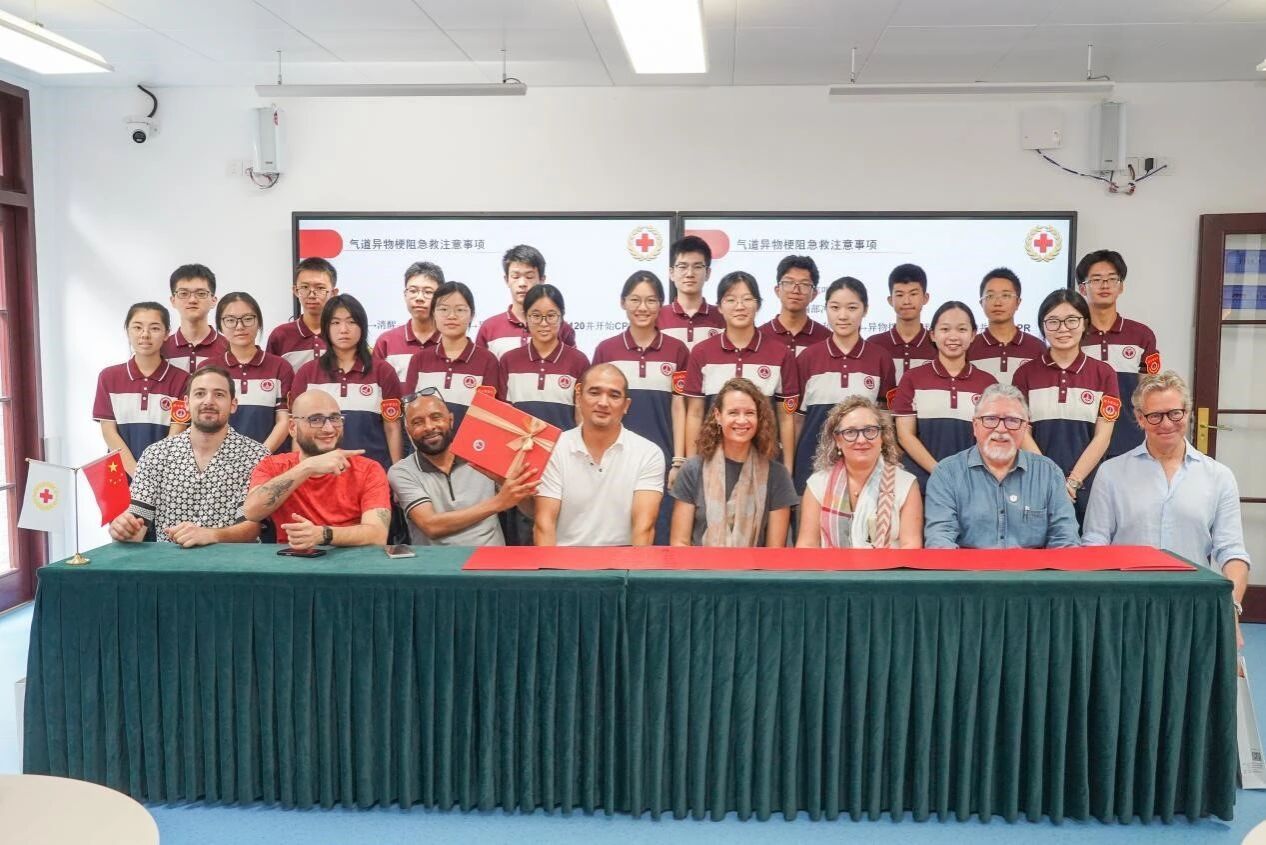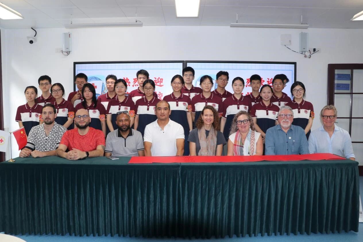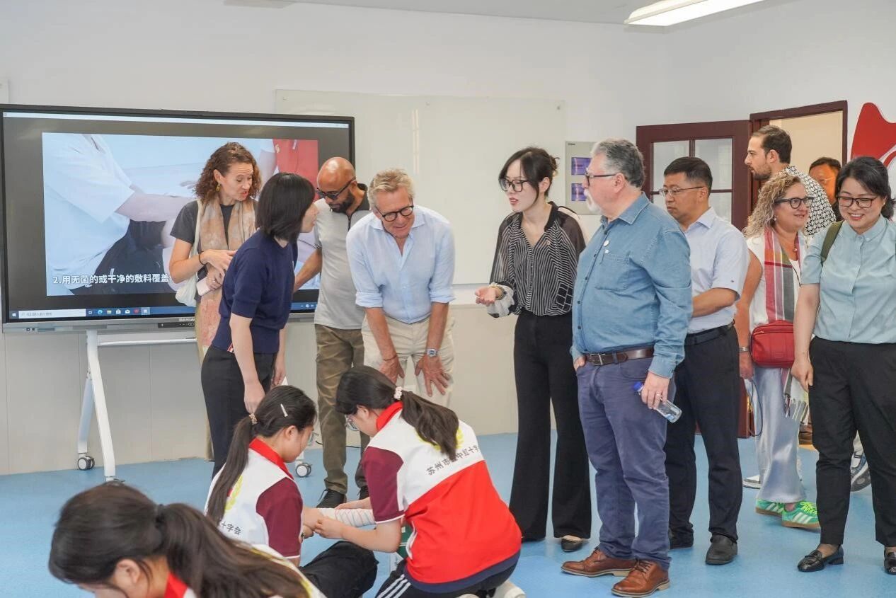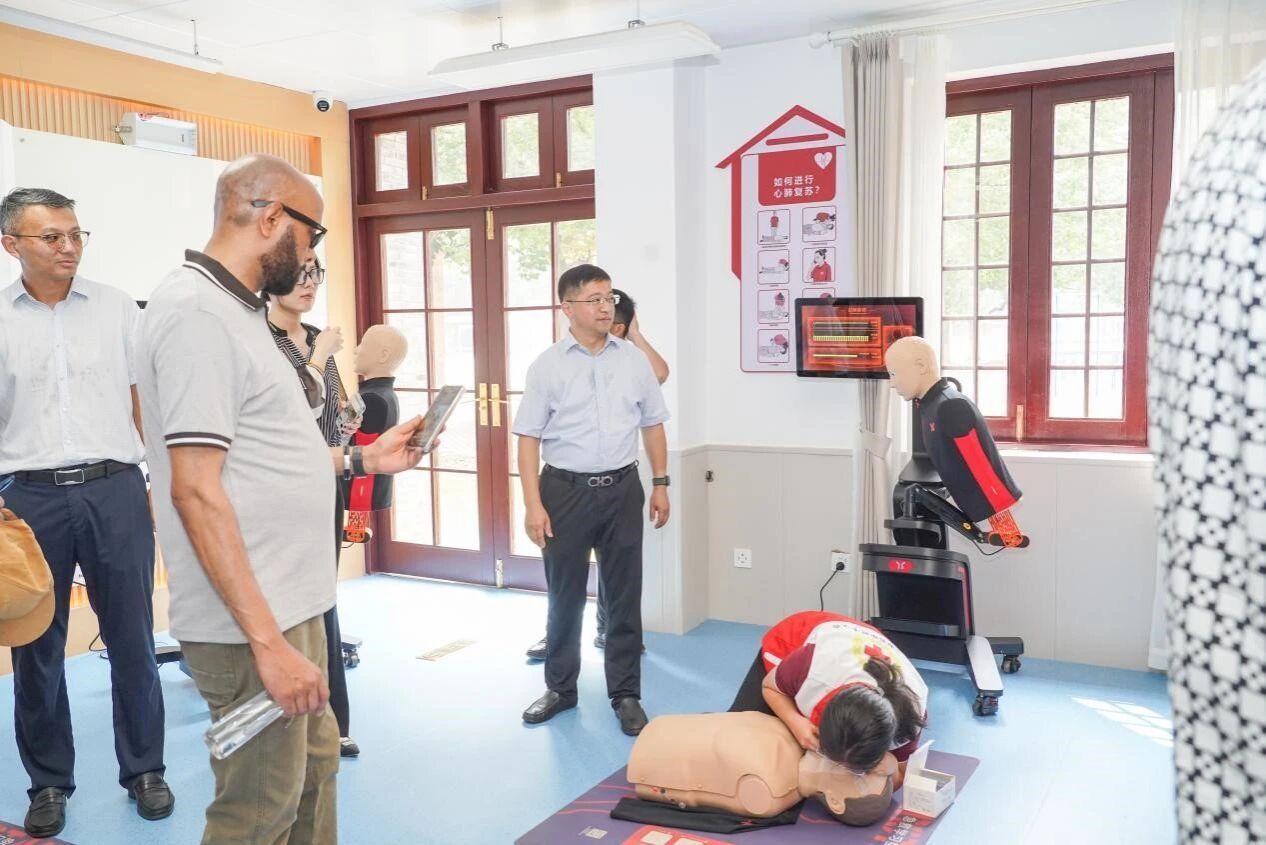 2025年9月7日,一场跨越山海的温暖相遇,在苏州市第五中学的百年校园中悄然开启。来自智利、英国、吉尔吉斯斯坦、埃塞俄比亚、格鲁吉亚等国家红十字会及牛津大学的专家、学者在中国红十字总会联络部宋毅副部长、省红十字会钟萍副会长等领导的陪同下,齐聚五中,共同见证中国学校急救教育蓬勃发展的成果。