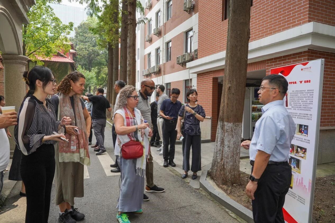 “这里的孩子,不仅学习知识,更在理解生命。”一位吉尔吉斯斯坦代表在参观途中由衷感叹。阳光透过树叶的缝隙,在外宾们的肩头跳跃。他们沿着校园小径缓缓而行,在一幅幅展板前驻足凝神。展板上,五中多年来的急救教育历程徐徐展开:从课堂培训到实景演练,从校内普及到社区推广,从体系建设到竞赛展示。每一位外宾都在认真聆听解说,仿佛在翻阅一部用爱心写就的“生命教科书”。